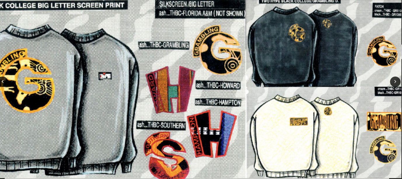 Two Hype hosted self-actualization talks at Morehouse University and sponsored the 1993 Howard Homecoming stomp competition. The Black College collection included Howard, Morehouse, Florida A&M, Grambling, Southern, and Hampton.